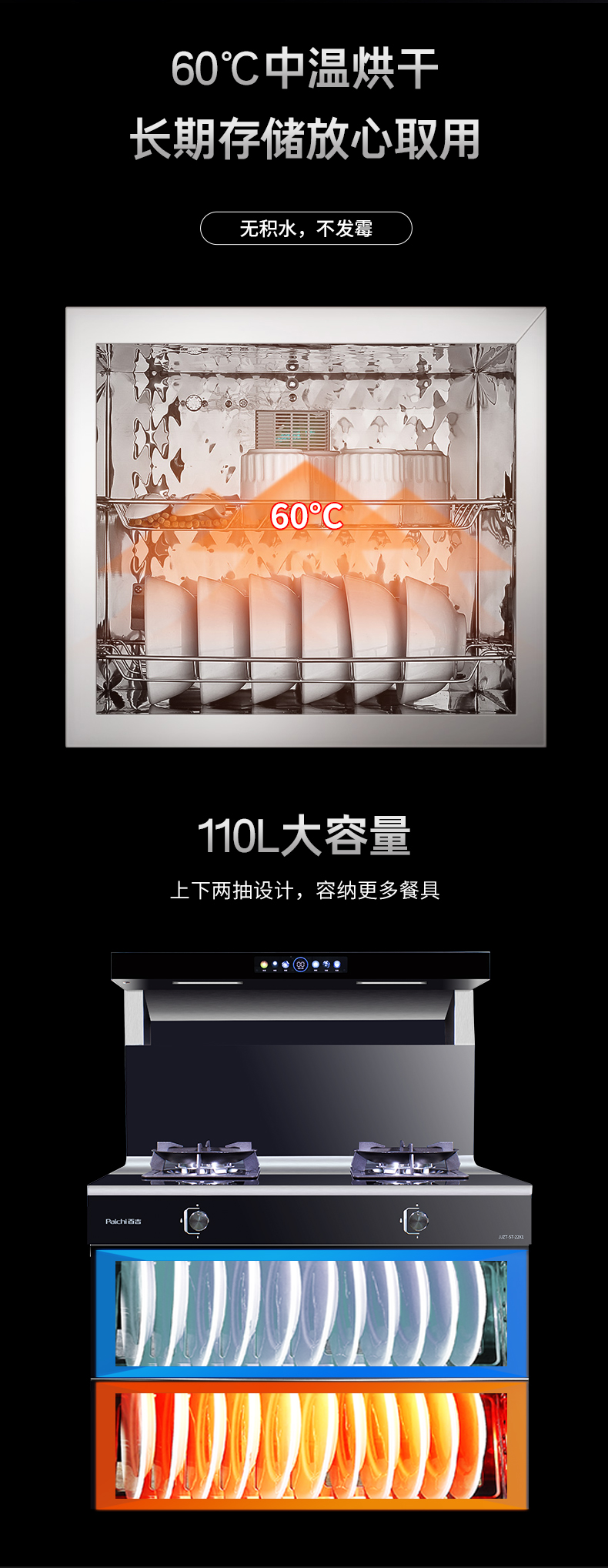 900寬集成灶5.2kW配置消毒柜款