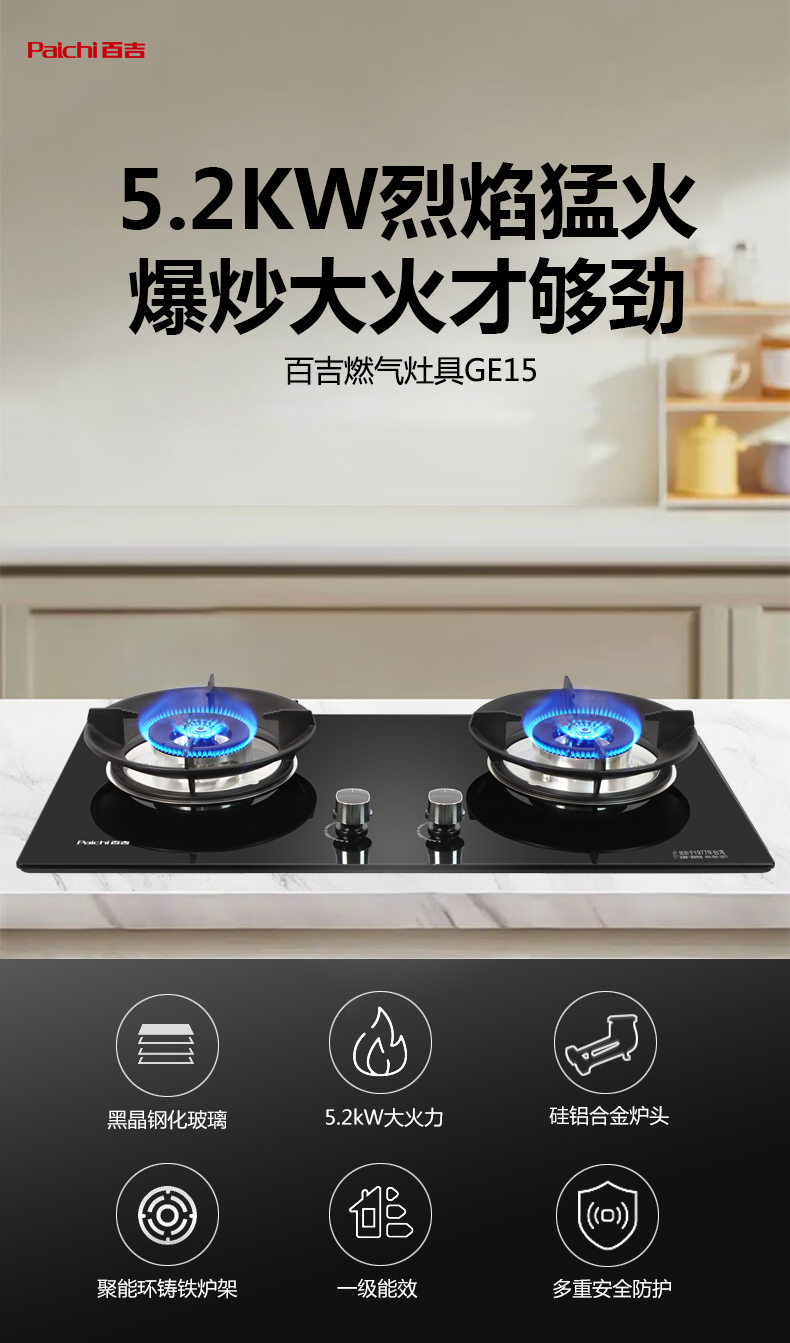 5.2kW聚能大火力 63%高熱效率1級能效